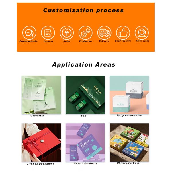 | Surface Process | Glossy lamination/Matte lamination/ Glossy varnishing/Matte varnishing/Embossing/Debossing/Gold & Silver Stamping/Spot UV. |